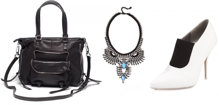 With its zipper edging and front detailing, this Joelle Hawkens satchel has a laid back, downtown feel that’s compelling. The size of this bag is practical and functional, and the tassel detailing is on-trend but not overwhelming. Its great price point and edgy allure makes this a promising everyday bag. To stay with this edgy vibe, I looked to no other then Alexander Wang. These calfskin booties add polish to this look while still keeping with the initial downtown-cool feel. For a finishing touch, I chose a Dannijo necklace that blends perfectly with the rest of this ensemble but elevates it a bit. I’m a girl who loves her jewels, so I had to add this hint of sparkle.