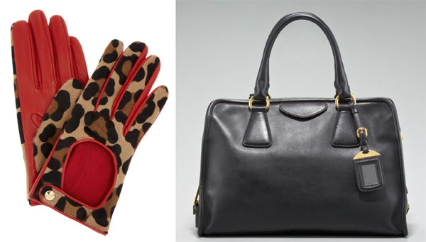 Black, as a color, is one of my favorites. It always has been, even during childhood when most little girls fawned over pink; when everyone else in my first grade class had a pair of white Keds, I had black ones. But now, because I wear so much black clothing, wearing black accessories and shoes just feels really…dull. Even a black bag as beautiful and functional as the Prada Calfskin Tote can’t make it into my wardrobe without a good game plan for spicing it up. I think that the Agent Provocateur Leopard Print Calf Hair Driving Gloves would do just the trick for fall.