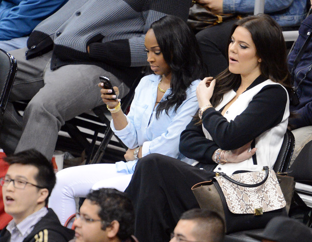 Khloe Kardashian keeps her Celine Trapeze by her side at a Clippers game