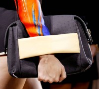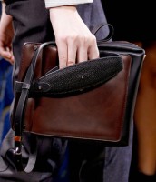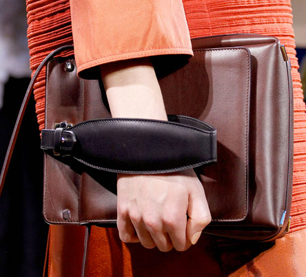 I agree about the awkward bag carrying. I mean was the old fashioned clutch or the ever popular shoulder strap such a bother? Do we need to wrap our hands (and arms for the big bags) around a bag and then slip them into a strap so we don’t drop them? Was the strapless clutch so hard for the average woman to carry? This lame trend doesn’t showcase the bags very well which I thought was the purpose of the runway show…