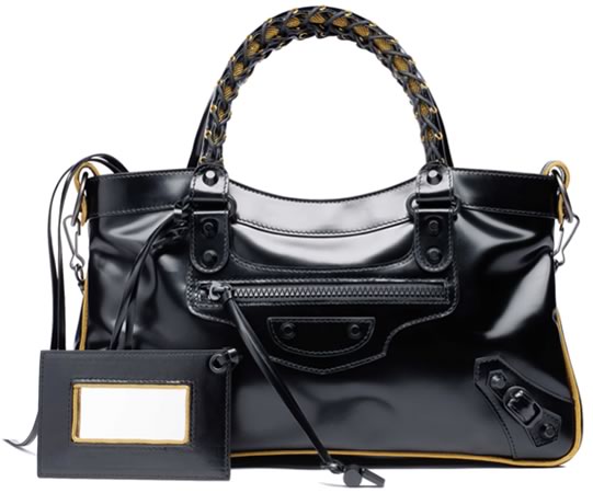 Newly released, the Balenciaga Glaze effect features an iced finish, which is shiny because of a special abrasive treatment given to the leather. The handles are embellished with chains which is inspired by the season’s runway dresses. The Glaze effect appears rubbery in pictures, almost a bit futuristic.