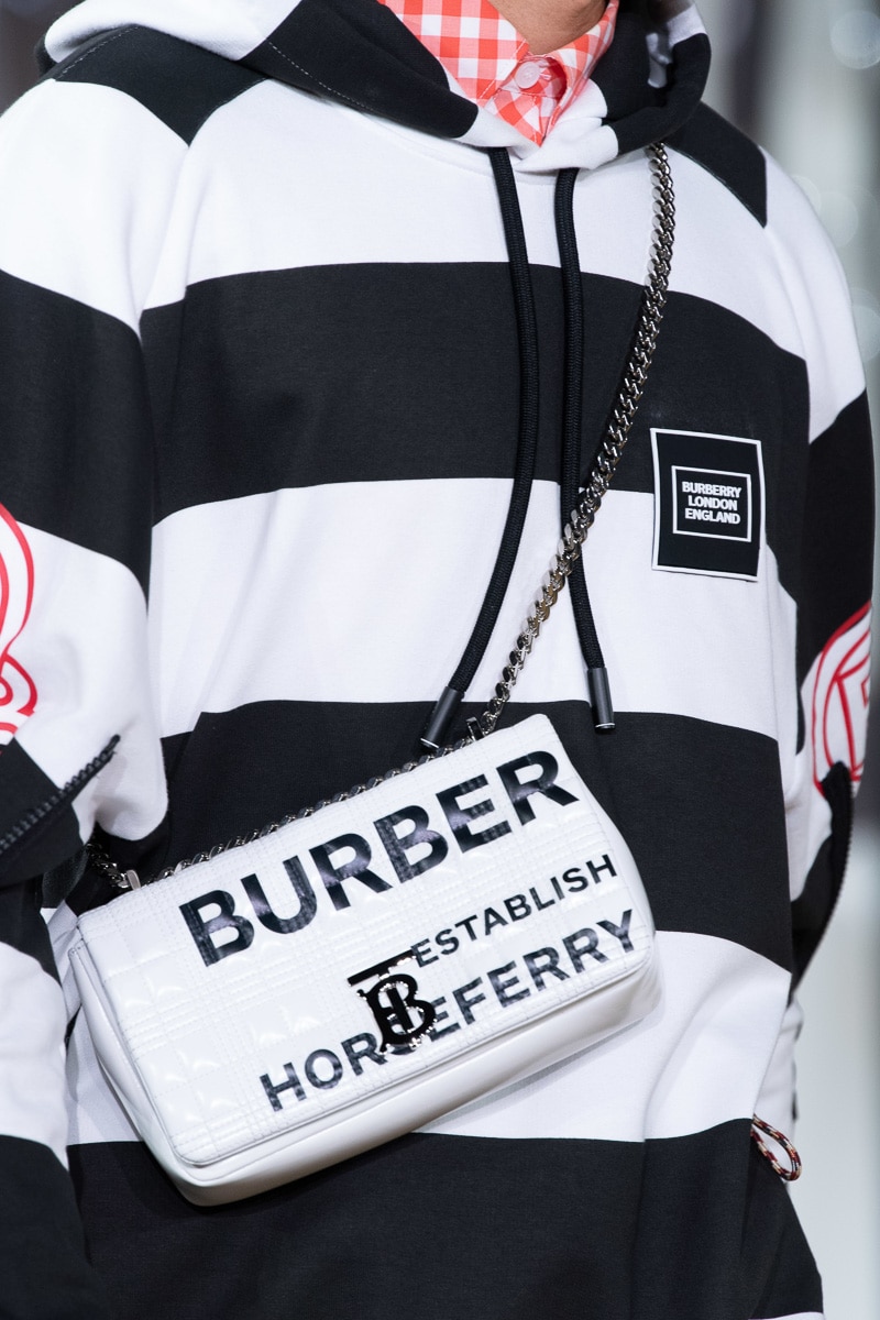 For Spring 2020, Burberry focused largely on its newest shoulder bag, the Lola, showcasing new iterations of the bag. New versions included a metallic silver belt bag as well novelty versions featuring everything from the Burberry screen print to a summery gingham print, and even a zebra printed Lola Bag. Other notable shapes included a sleek, skinny, structured bag with various versions of the Burberry logo and an interesting (and very minimalistic) hobo bag which taps into the classic Burberry aesthetic. View all of the bags from the Spring 2020 collection below.
