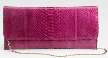 Now that I think about it, I have spent many nights recently glued to my couch watching the 2008 Olympics (I am pretty sure many of you have done the same thing). Usually around mid-week I begin thinking about weekend plans, and of course, what I might wear and which bag would go with the outfit best. So, I think it is time for me to have TiVo record tonight’s Olympic events and go out on the town. Now, if I could just have this clutch to take with me, I would be that much happier. The snakeskin material, magnetic snap flap closure and zip inside pocket just make me want the clutch even more. Plus, I like options and this clutch has a golden chain strap which can be stored in the bag. I rarely find myself using the strap, but it’s nice to have options. All I need to do is save a bit of cash and I can buy this fabulous clutch through Saks for $875.00.