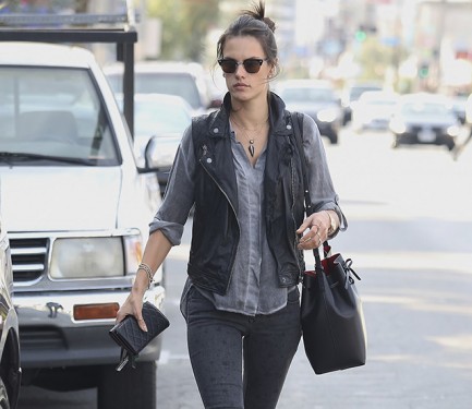 Here’s Alessandra Ambrosio, leaving lunch in West Hollywood while carrying a black Mansur Gavriel Bucket Bag. These bags are completely sold out at the moment, but you can add one to your wishlist on Net-A-Porter and receive notification as soon as they come back in stock, which according to our sources, should be sometime in late February. If you’d like to browse through Alessandra’s most impressive handbag stash, do have a gander at “The Many Bags of Alessandra Ambrosio.”