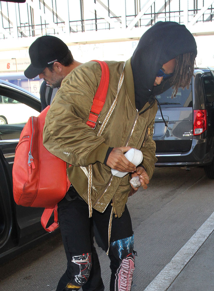 Jaden Smith also made the trek to LAX this week. He’s carrying a bright red Louis Vuitton Michael Backpack. Jaden certainly has one of the most distinct style games for a male celeb under 20. Never change, Jaden. Never change.