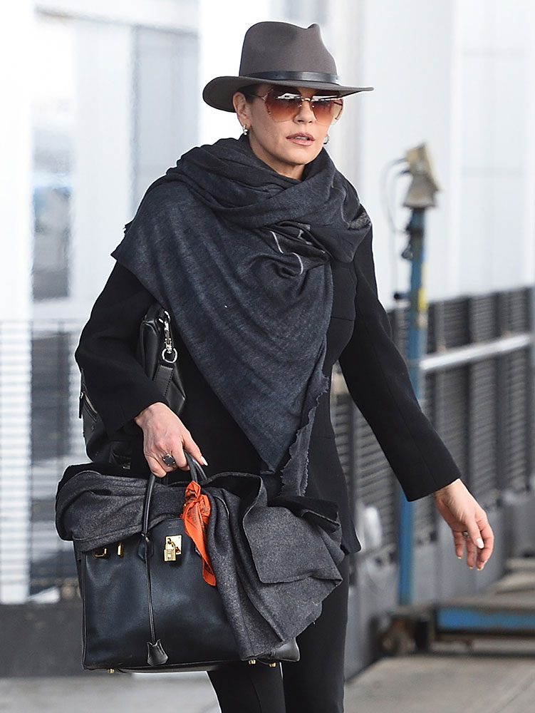 Catherine Zeta-Jones is on my shortlist for celebs I’d love to spot at the airport. She always seems to do luxury travel so luxuriously. Here she is at JFK with one of her Birkins.