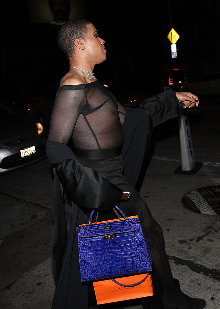 Meanwhile, back in LA, EJ Johnson carried this exotic, cobalt blue croc Hermès Kelly to dinner at Catch. It’s makes a vibrant addition to his collection.