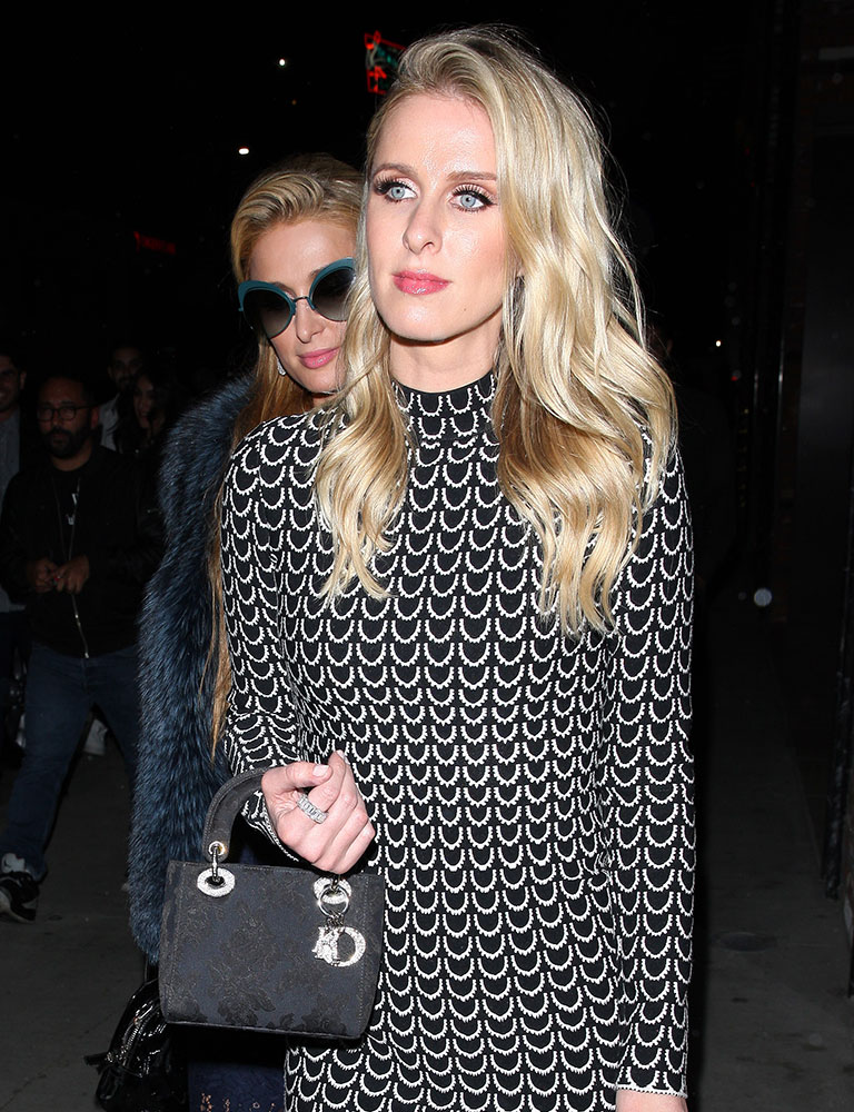 Nicky and Paris Hilton recently dined together at Tao in Hollywood, and Nicky brought along this dainty, brocade-patterned Dior Lady Dior Bag for the occasion.