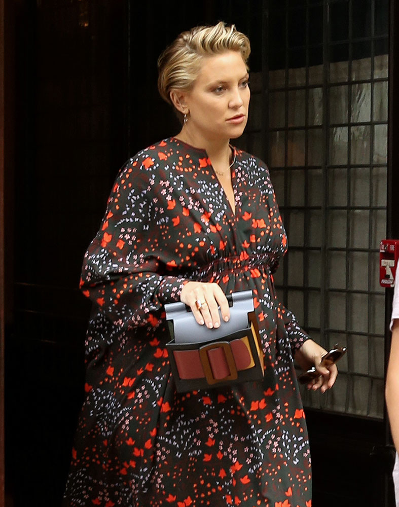 There are a couple things about Kate Hudson that you may not presently be aware of…she has SHORT hair now, and she’s pregnant again! Kate was recently spotted carrying the BOYY Romeo Clutch while leaving her NYC hotel. Shop the BOYY Romeo Clutch via Net-a-Porter ($835)