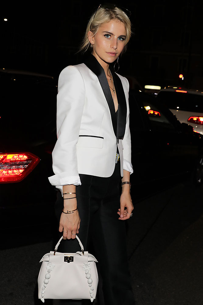 Here’s German fashion blogger/model/other Caroline Daur leaving DSquared in Milan with a white Fendi Peekaboo. White seems to be everyone’s favorite hue this week. Shop the Fendi Peekaboo Bag via Nordstrom ($4,250)
