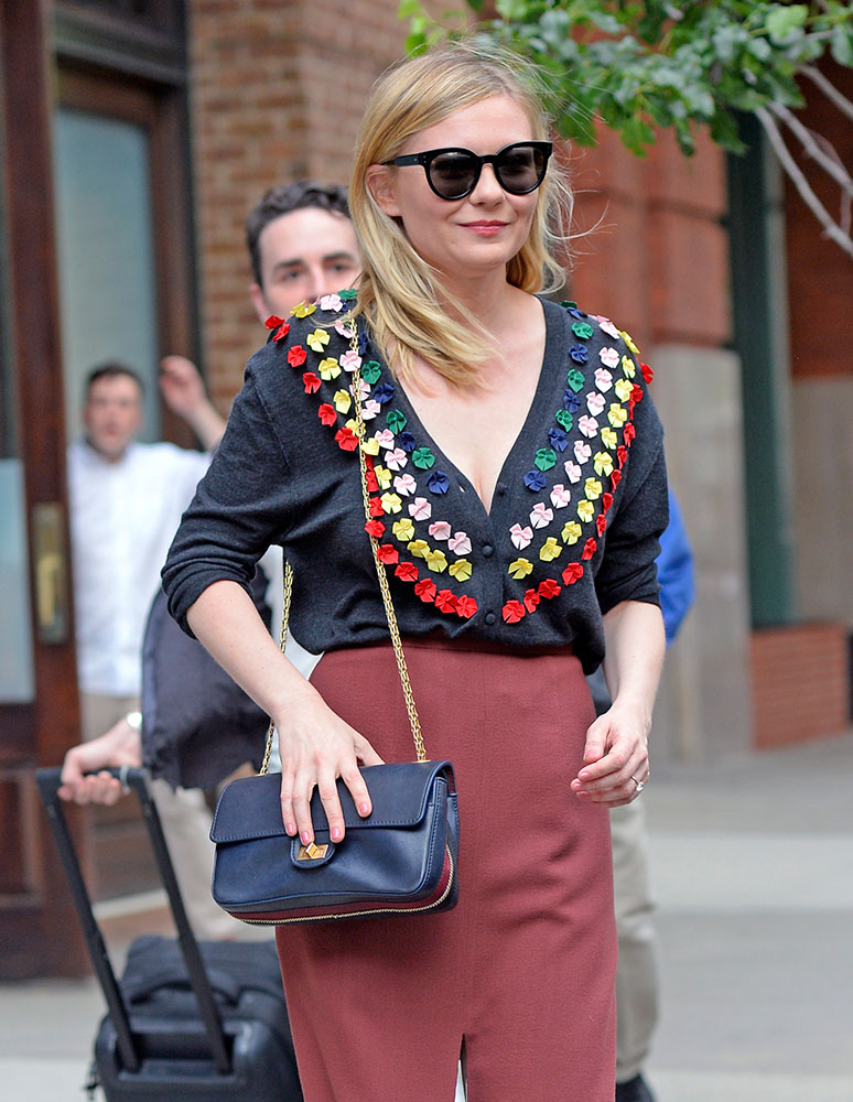Meanwhile, back in NYC: Kirsten Dunst brought this unusual Chanel Flap on the press trail for her new flick The Beguiled. This is a strange version of the 2.55 the brand did a few seasons ago. Shop Chanel Bags via Vestiaire Collective