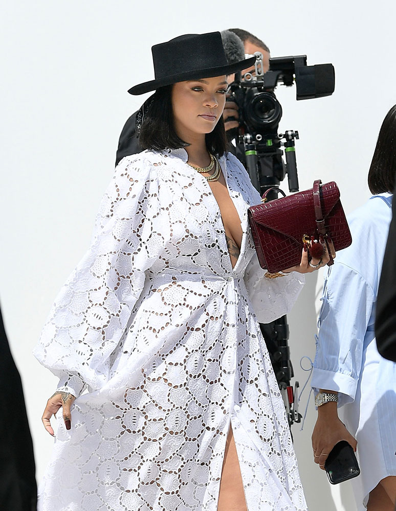 Here’s a second mystery bag, and it’s on Rihanna‘s arm, no less! We’re pretty certain it’s vintage, but vintage who? Ri-Ri is seen here at the LVMH Prize Ceremony at the Louis Vuitton Foundation in Paris. But is it Louis Vuitton? Or Dior? Or something else altogether?