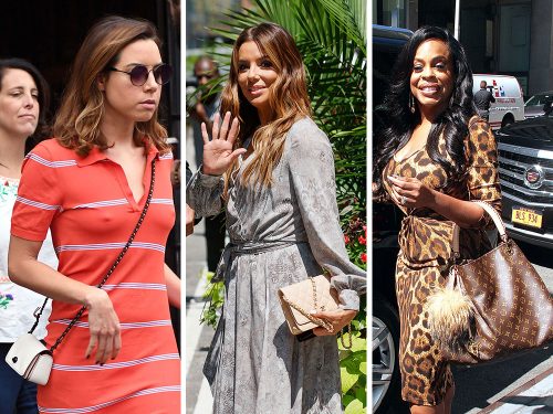 Here’s Eva Longoria, out and about in NYC with a subtle beige Chanel WOC Bag. This is what she wore to sub-in for Kelly on Kelly and Ryan on Wednesday morning. Shop Chanel via Vestiaire Collective