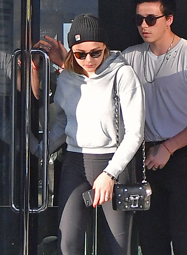Here’s Chloë Grace Moretz and her boyfriend Brooklyn Beckham leaving a jewelry store together in Beverly Hills. Chloë is carrying a little black Proenza Schouler Hava Bag. Shop the Proenza Schouler Hava Bag via Neiman Marcus ($1,845)