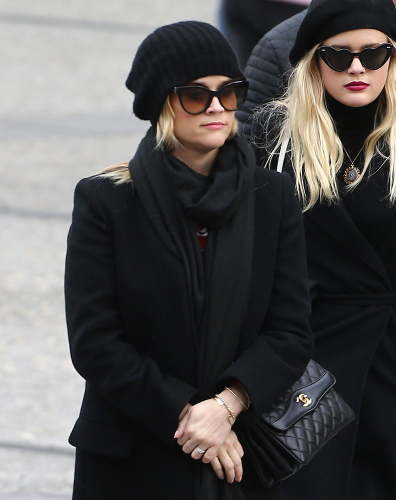 Here’s Reese Witherspoon and her daughter Ava, enjoying (?) the holiday break in Paris together. Reese is carrying a supple, black quilted Chanel Flap Bag. Shop Chanel Bags via Vestiaire Collective