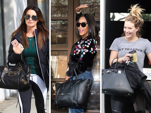 We’re not certain if Kyle Richards hit the gym before doing a little shopping in Beverly Hills wearing head-to-toe athleisure wear. She’s carrying an eye-catching Balenciaga Metal Edge City Bag with snazzy gold hardware.