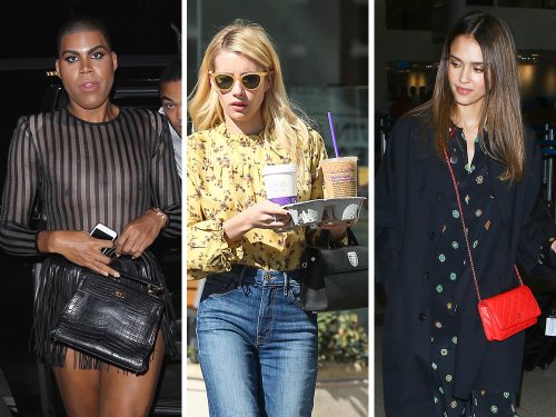 Jessica Alba has a very diverse handbag collection that runs the gamut when it comes to price points. We only occasionally see her carry big names like Chanel, and yet here she is, carrying a little hot red Chanel Wallet on Chain Bag at the airport.