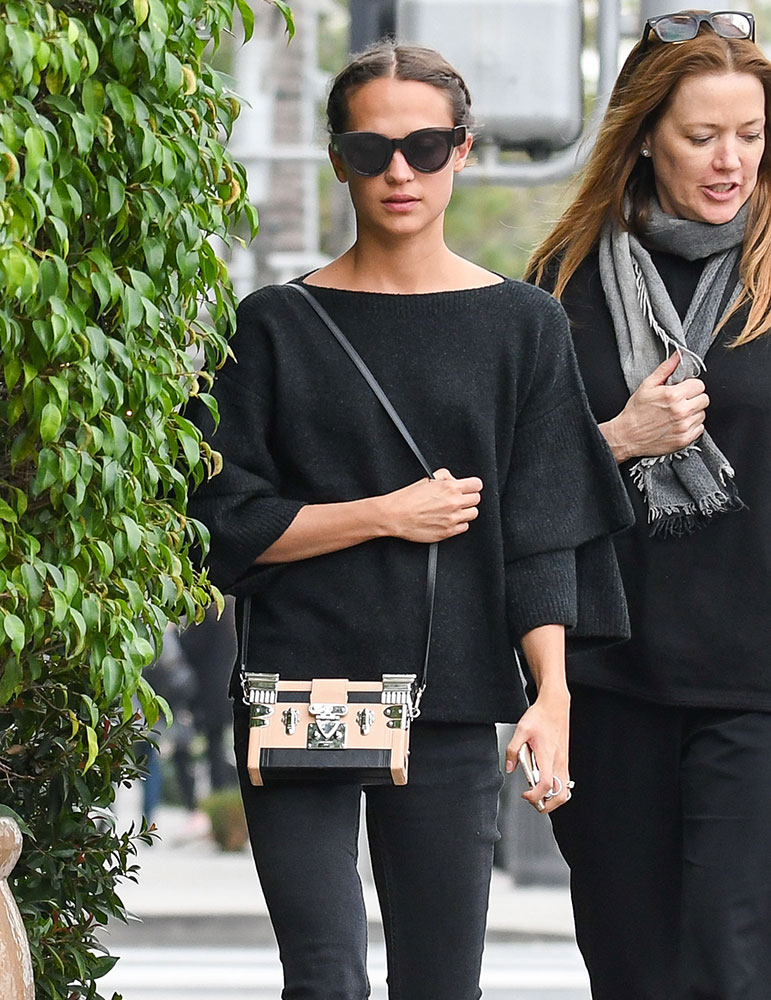 Alicia Vikander carried this pale pink Louis Vuitton Petite Malle Bag while out for lunch with a friend in LA. Shop the Louis Vuitton Petite Malle Bag via Louis Vuitton ($8,850)
