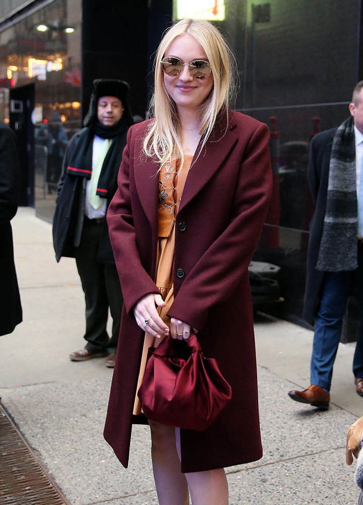 Dakota Fanning also made the trek to GMA this week to promote her new drama The Alienist on TNT. She’s carrying a red satin The Row Ascot Bag. Shop The Row Ascot Bag via Barneys ($990)