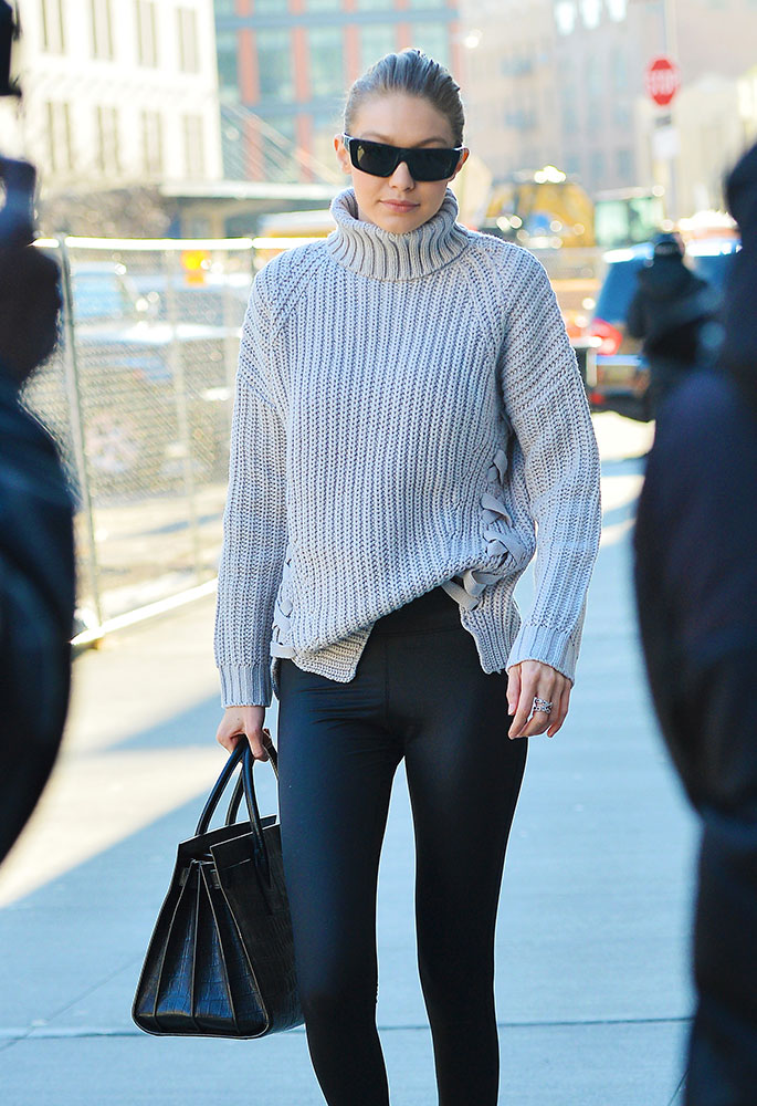 Here’s Gigi Hadid, ambling around NYC with a Saint Laurent Sac de Jour that she’s been relying on a lot lately. Shop the Saint Laurent Sac de Jour Bag via Neiman Marcus ($3,150)