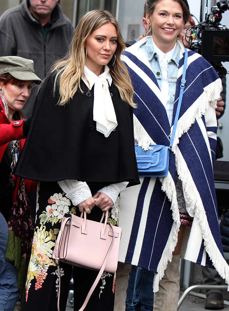 Part 2: Hilary also carried this small pink Saint Laurent Sac de Jour while filming the show. So the Sac de Jour is the aspirational handbag that thirty-somethings carry when they’re playing twenty-somethings on a TV show about forty-somethings pretending to be twenty-somethings. Or something. Shop the Saint Laurent Sac de Jour via mytheresa.com ($2,790)