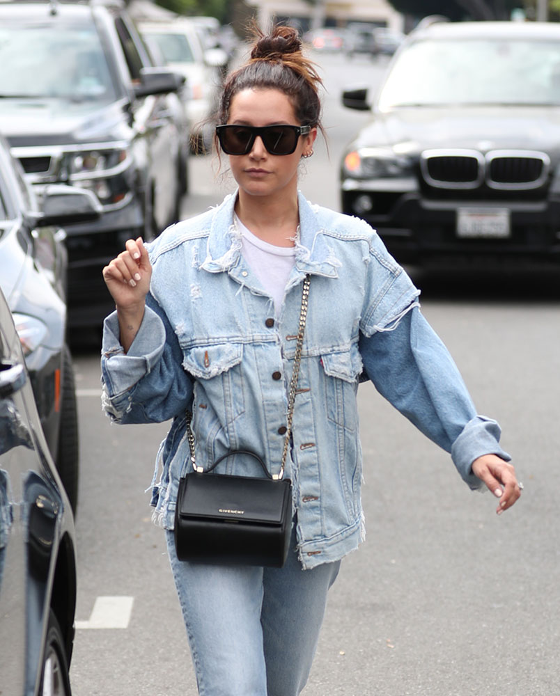 Moving down the list of celebrity Ashleys alphabetically, we have Ashley Tisdale, shopping in West Hollywood with her Givenchy Pandora Box Bag. Shop the Givenchy Pandora Box Bag via Net-a-Porter ($1,995)