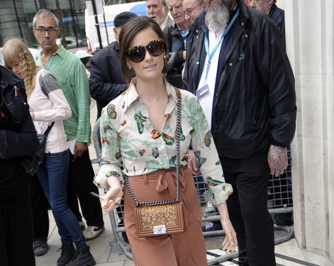 Here’s country music starlet Kacey Musgraves, signing autographs outside BBC Radio in London. Kacey is wearing a Chanel Boy Bag from the Dallas-inspired 2014 Metiers d’Art collection, which is pretty much a perfect choice for a young, successful country star; hand-tooled leather is particularly popular with the country-western set. It’s worth noting that she is also the first and only celeb under 60 I have seen rocking palazzo pants. (Kudos?)