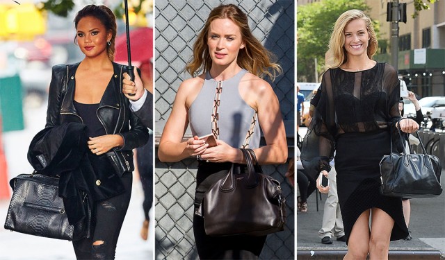 I love the Celine Ring bag that Chrissy Teigen is wearing, absolutely perfect style. The Prada bag is ridiculously overpriced, $3500 for a very bland bag. Rita Ora’s Moschino bag is terrible too. I quiet like Kate Moss’ bags, the Gucci Jackie tote is elegant as is the Chanel bag.