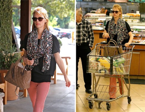 January Jones was spotted gallivanting around Pasadena with her Chanel Chain-Handle Quilted Tote this past weekend. And of course, by “gallivanting,” we mean performing totally mundane, everyday tasks, like buying groceries. Stars, they’re just like us! Occasionally. They shop at Whole Foods! They buy overpriced juices! They get assailed by paparazzi while waiting patiently at the olive bar!