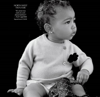 Interesting how she CANNOT be shown (save for the top of her head for a tenth of a second, several times in several episodes, an obvious DO NOT SHOW NORTH’S FACE directive from her father) in any Kardashian show but it’s fine to splay her about the high end fashion publications.