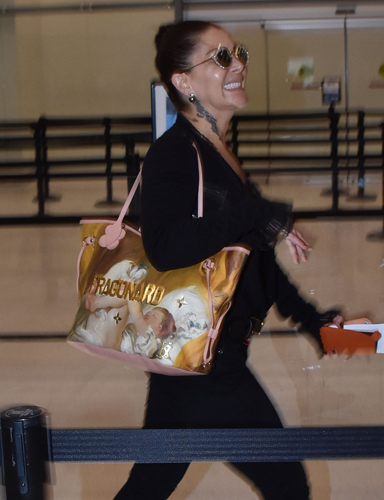 Mexican recording artist Alejandra Guzman was spotted carrying this Louis Vuitton x Jeff Koons Masters Neverfull Tote as she arrived at the airport in Puerto Rico. She’s in PR to play a show that was rescheduled after Hurricane Maria. Shop the Louis Vuitton x Jeff Koons Masters Neverfull Tote via Louis Vuitton ($3,200)