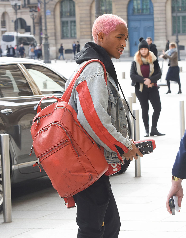Also in Paris this week: Jaden Smith, seen here running around with pink hair and a red leather Louis Vuitton Michael Backpack. Shop the Louis Vuitton Michael Backpack via Louis Vuitton ($3,600)