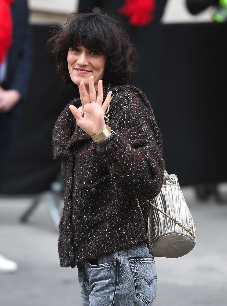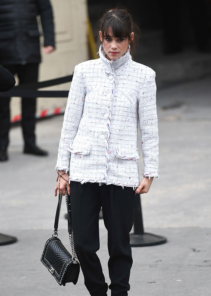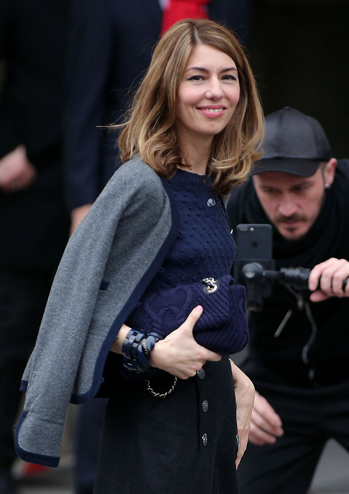Longtime fashion favorite and celebrated filmmaker Sofia Coppola was another of Lagerfeld’s movie-making guests, and she carried a knit Chanel Flap Bag. Shop Chanel via Vestiaire Collective