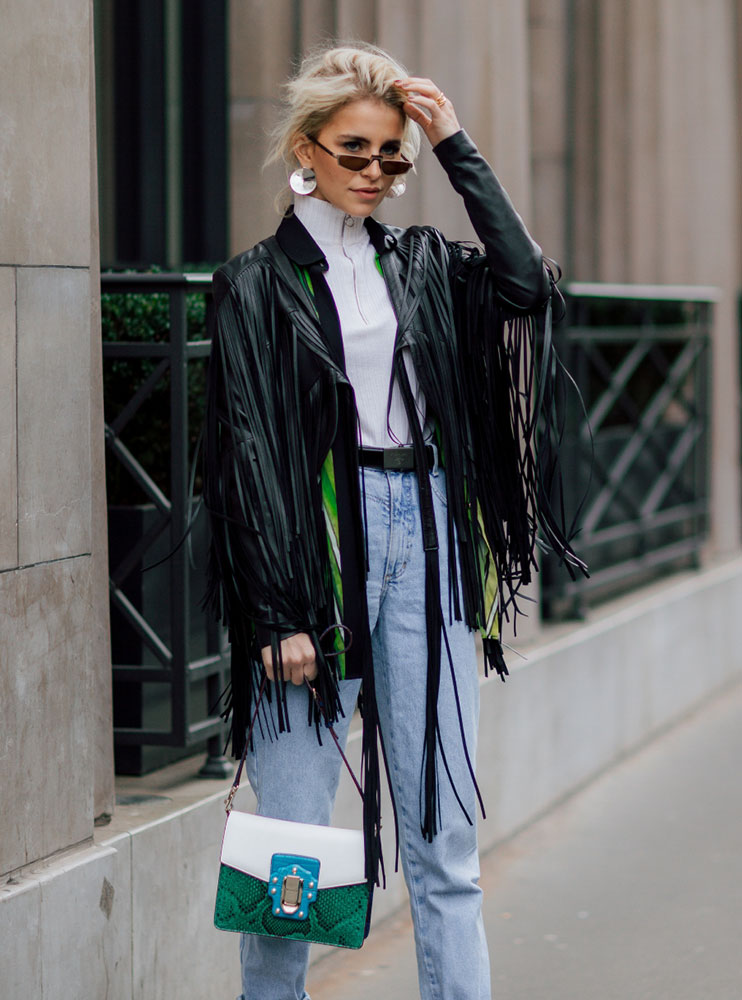 From the Valentino Free Rockstud Spikes Bag she’s carrying, I bet you can guess whose couture show Adriana Abascal was attending. Shop the Valentino Free Rockstud Spikes Bag via farfetch.com ($2,195)