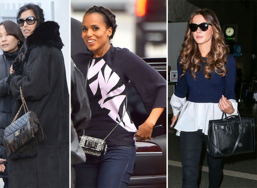 First, we’ll start with the non-Sac-carrying celebs. Here’s Kerry Washington, heading into an appearance on Jimmy Kimmel Live in LA with an adorable mini from Christian Louboutin. The Sweet Charity is one of only a few bags that have lasted the long haul with Louboutin. As I’ve mentioned a few times in recent round-ups, it seems that the majority of their bag designs are being phased out in favor of new models to come.