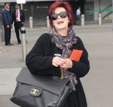 Here’s Sharon Osbourne, arriving in London to play her part on the UK’s The X Factor (aka, the original X Factor). As you can see, Sharon is carrying a truly massive Chanel bag that we’re dubbing the Chanel Oversized Flap Bag. It is, without a doubt, one of the biggest Chanel bags we’ve ever beheld. It’s gargantuan, so it obviously makes a perfect airplane carry-on, especially if you’d like to smuggle something large and exotic across international borders, like a live animal.