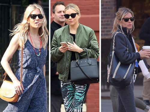 When Sienna Miller and her family relocated to New York City a couple years ago, she was instantly a New York paparazzi favorite. Like many of our very reliable NYC celebs, she spends a lot of time making her way around the city on foot, so she’s not all too hard to track down. She’s quickly become one of our regularly featured bag lovers. So after two years, it’s probably time we took a studied look at her bag collection. Sienna loves bold color, she shows a high amount of brand loyalty, and some of her favorites retail for well less than a grand. Here are some of Sienna’s best bags so far from 2018.