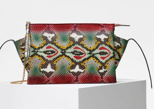 Céline seems to know it’s got a special little bag on its hands; not only does Trifold Crossbody Clutch come in several shades of leather for $2,200, but it’s also available this season in watersnake ($2,700), python ($3,050) and crocodile (price upon request). Check out all the seasonal versions below; this bag is available at Céline boutiques worldwide.