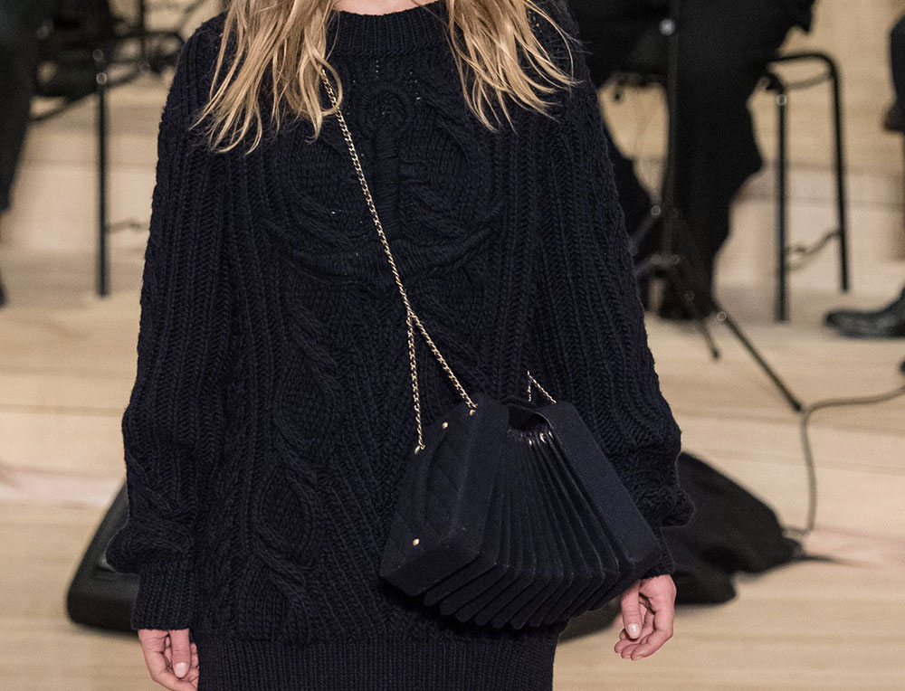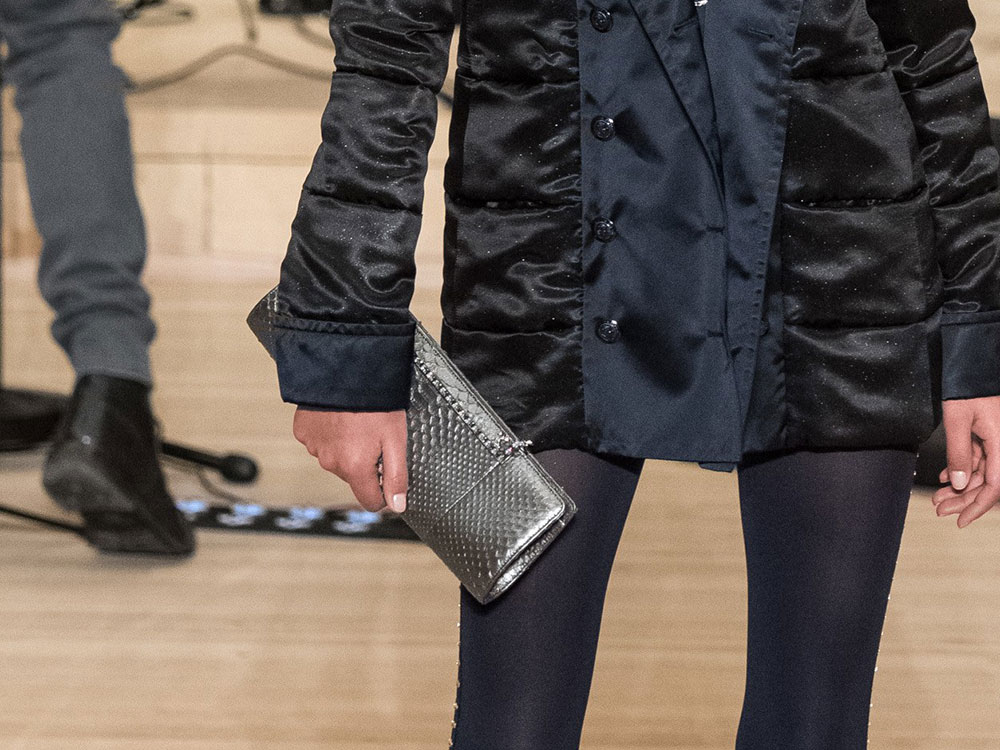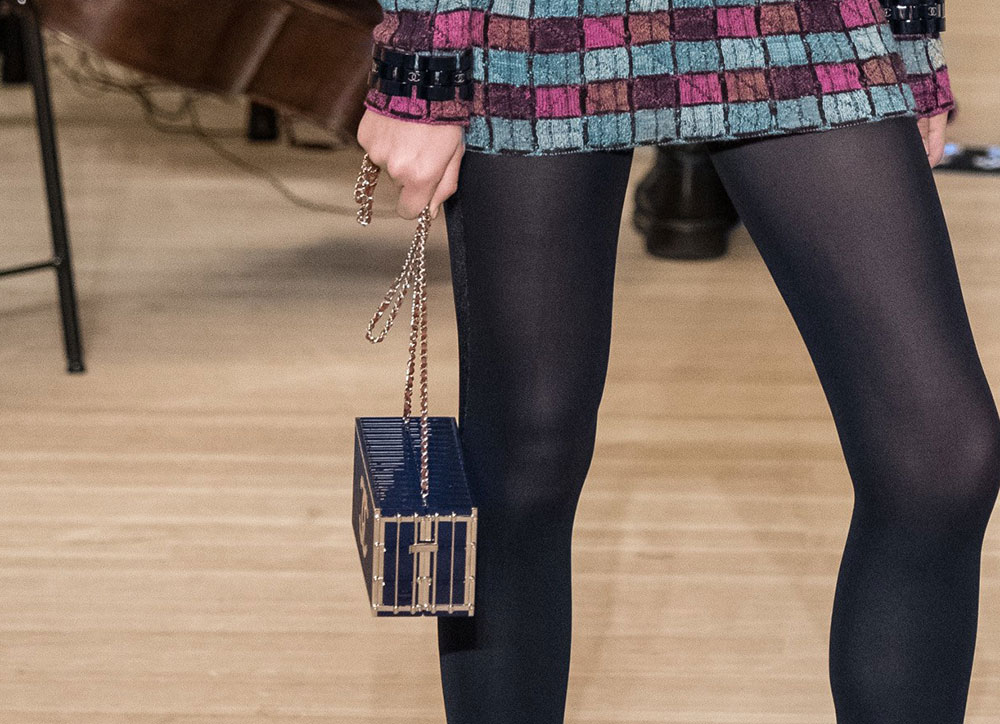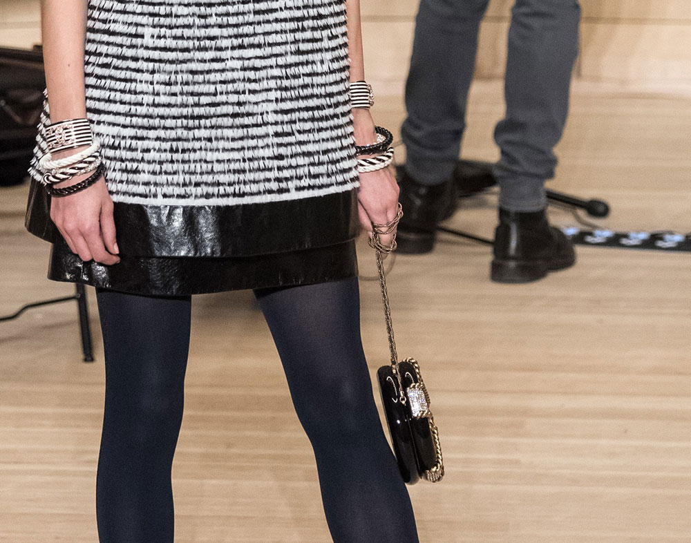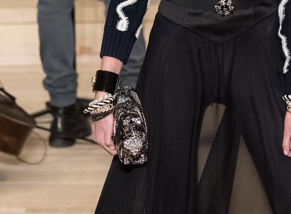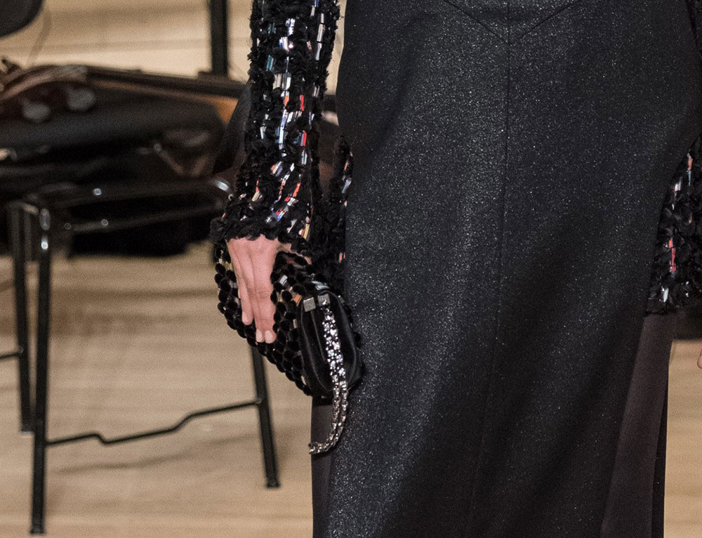 The collection is Lagerfeld at his most Lagerfeldian, with lots of black and plenty of military-inspired elements. The bags, though, retained their quintessential Chanel finishes, with the brand’s now-traditional mix of day bags and novelty evening clutches. Several of said clutches looked like mini Chanel shipping containers to me, but I’m not sure that’s what they were meant to evoke. If they are, indeed, miniature shipping containers, they’re my favorite Chanel clutches in a while. Chanel’s Metiers d’Art collections take the place of pre-fall, so you can expect to see this line in stores in about six months.