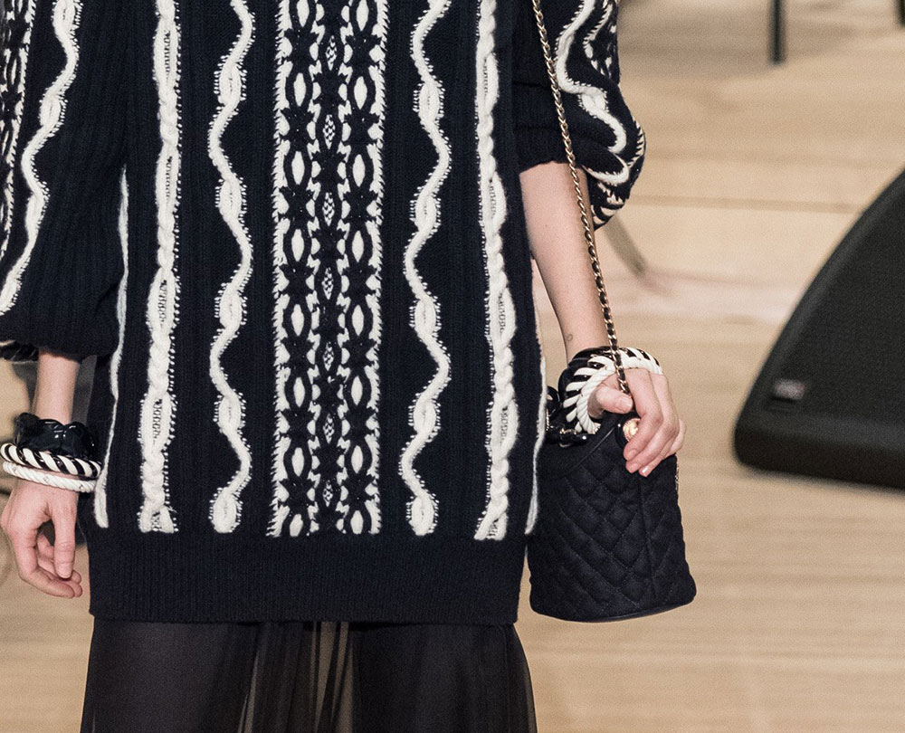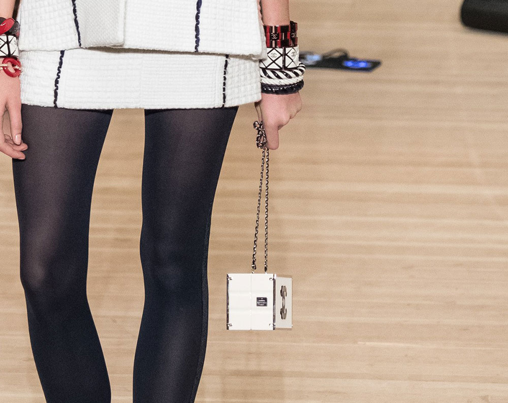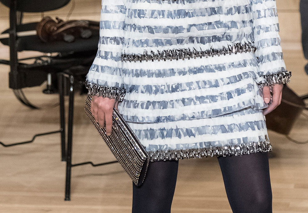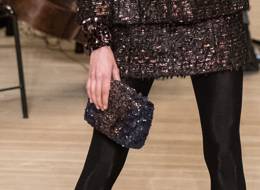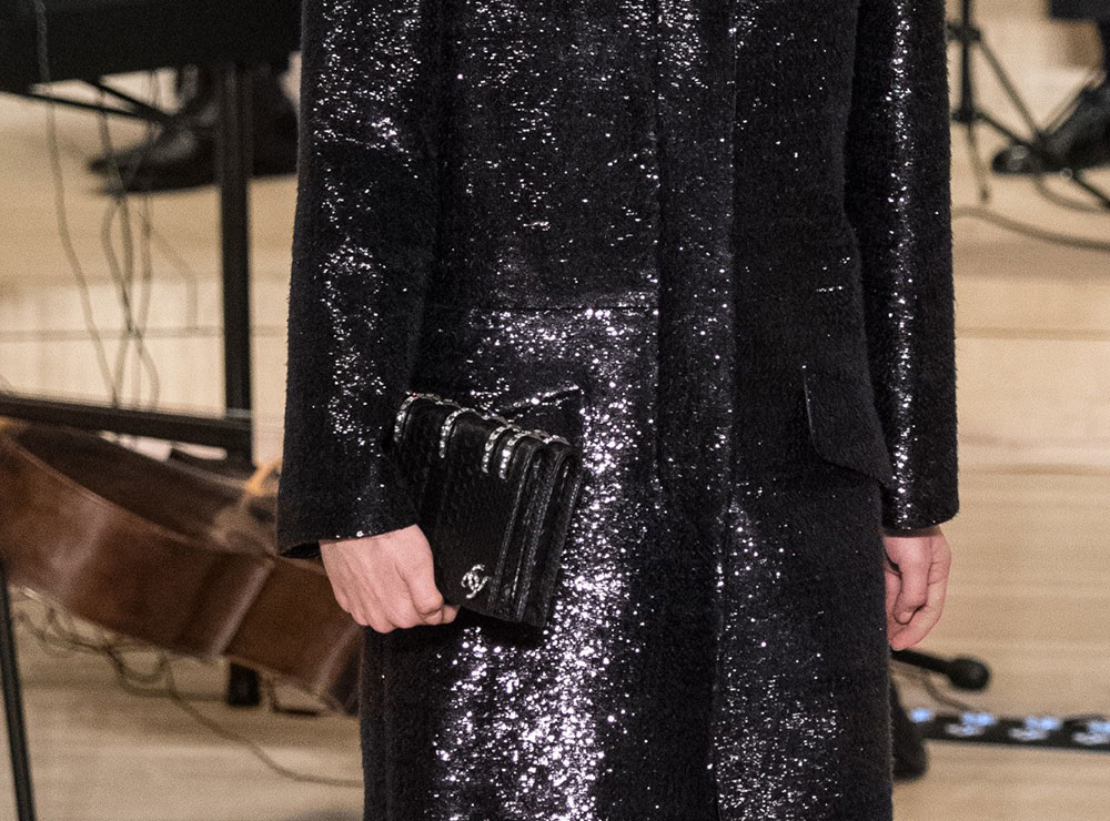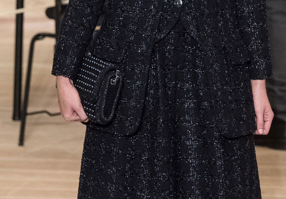 The collection is Lagerfeld at his most Lagerfeldian, with lots of black and plenty of military-inspired elements. The bags, though, retained their quintessential Chanel finishes, with the brand’s now-traditional mix of day bags and novelty evening clutches. Several of said clutches looked like mini Chanel shipping containers to me, but I’m not sure that’s what they were meant to evoke. If they are, indeed, miniature shipping containers, they’re my favorite Chanel clutches in a while. Chanel’s Metiers d’Art collections take the place of pre-fall, so you can expect to see this line in stores in about six months.