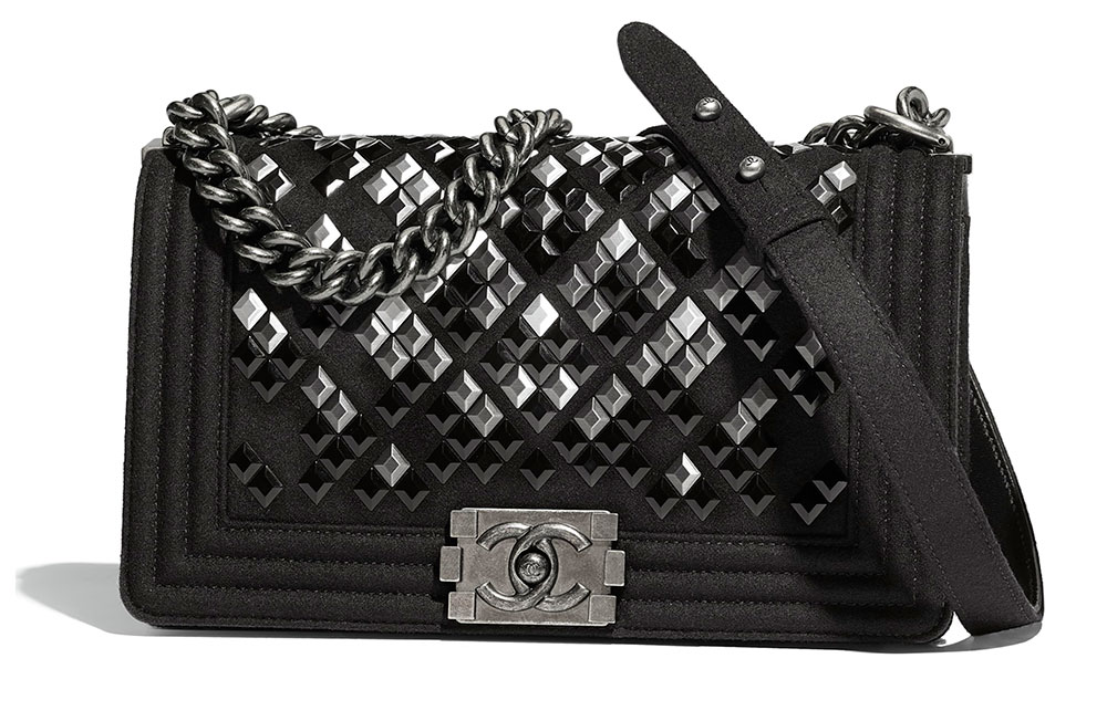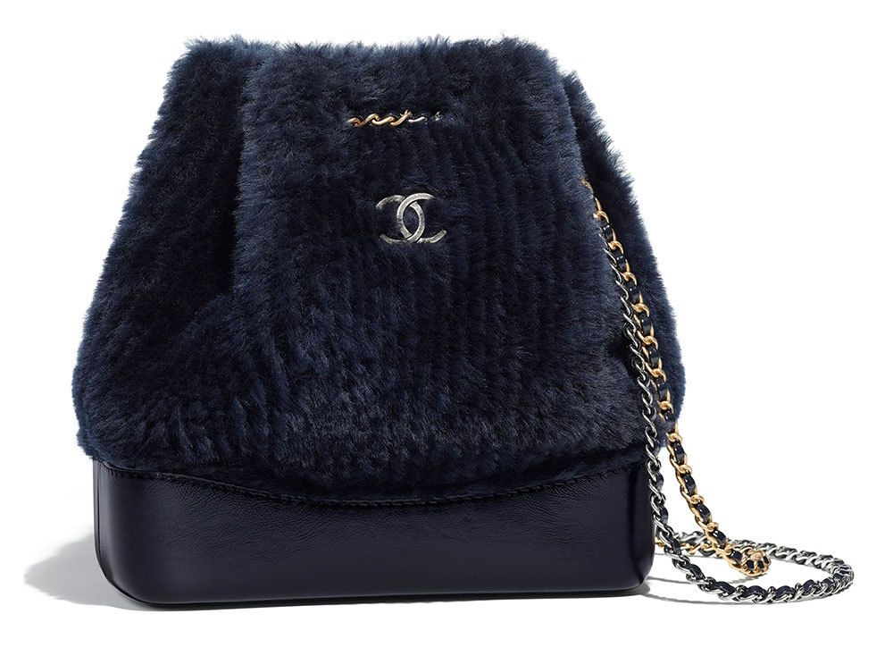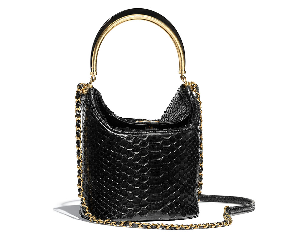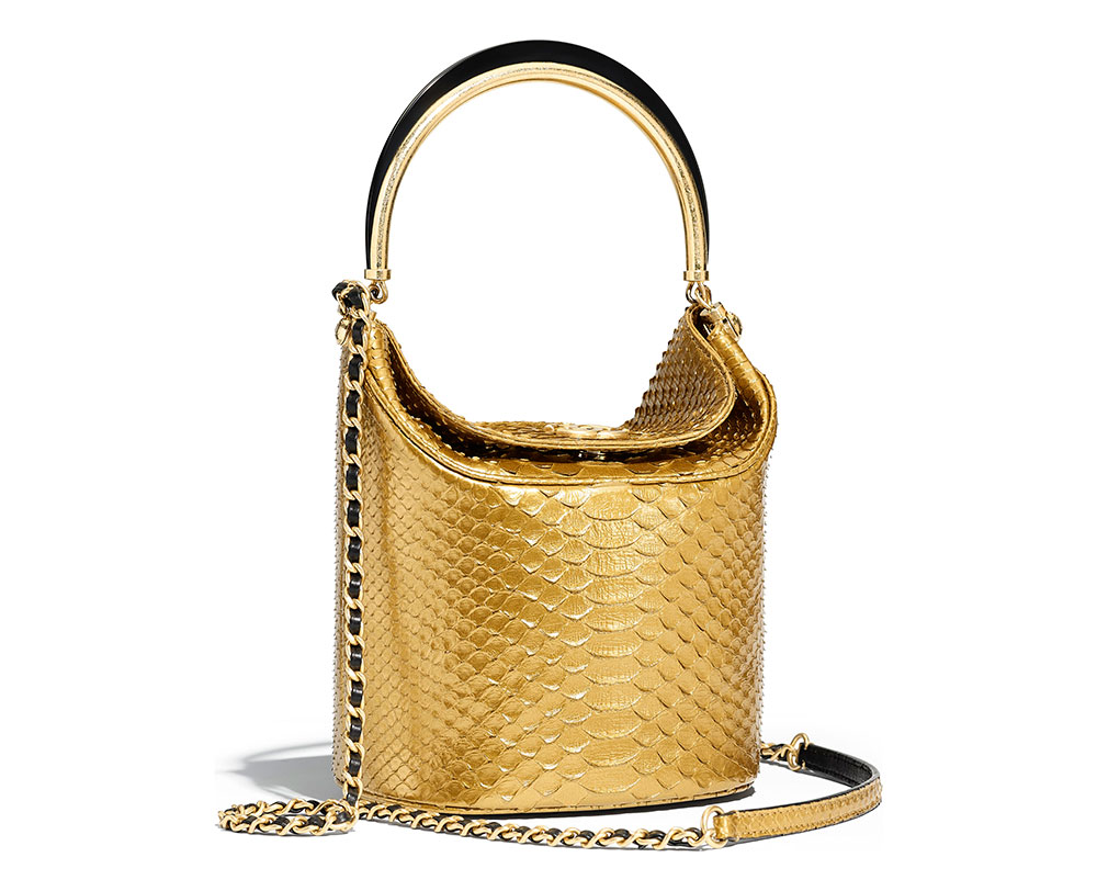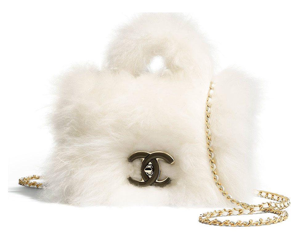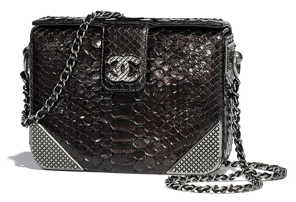 The collection’s tones are moody and its fabrics sumptuous; you’ll find several types of fur, as well as exotics like python and lizard in metallic tones that give the whole collection a truly glamorous feel, despite its somewhat industrial inspirations. If you need a reminder of those, though, you can find them in a five-figure evening bag, rendered in great detail to look like a Chanel shipping container. Check out all the bags below.