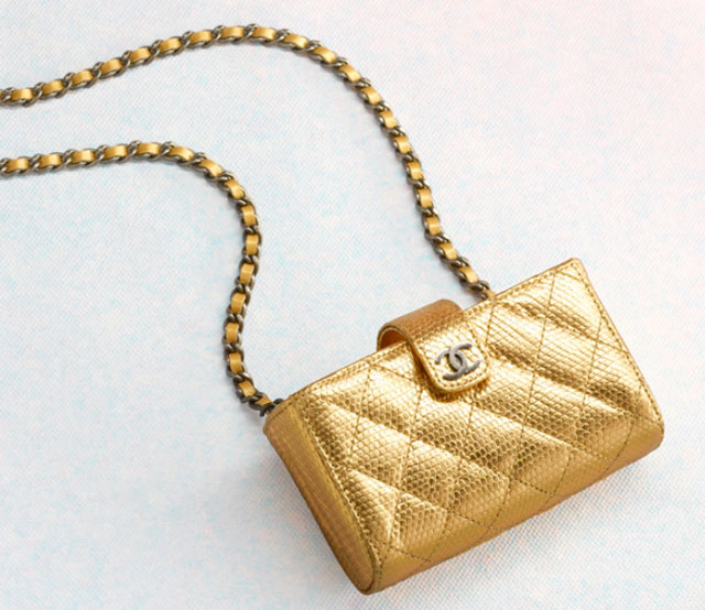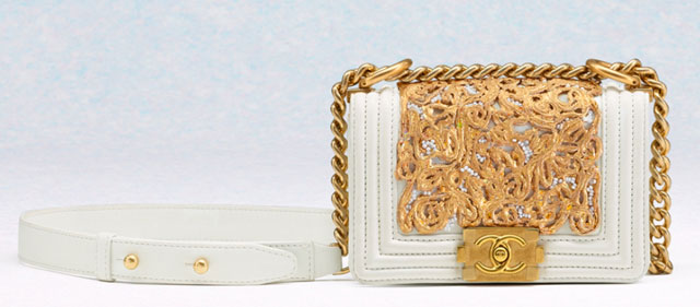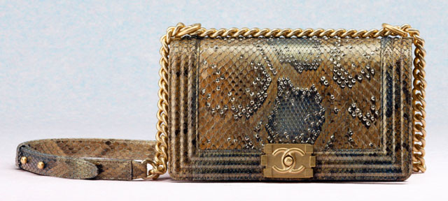 Chanel Cruise 2013, originally presented in the garden at Versailles, is as ladylike as the location would suggest. The bags are done in soft golds and blues, and as has been the norm for the past few seasons, the Boy Chanel bags are the real gems. My favorite, though, is the delicate blue-grey and gold python Chanel Wallet on Chain above. Check out all the loveliness in the slideshow below, and for more information on the bags, contact Chanel at (800)550-0005 or Chanel.com.