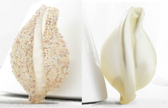 Megs and I recently gave you guys a rundown of the season’s best wedding bags, both traditional and quirky, but there’s one little clutch that we didn’t include because we couldn’t decide which category it would belong in. On the one hand, the Chanel Shell Minaudieres are everything you expect out of a traditional nuptial bag – small, luxurious, twinkling little things in shades of extremely pale ivory and blush. On the other hand, they’re giant molded sea shells, so “traditional” might be a bit of an overstatement. Unless you’re having a beach wedding, though; then these bags are perfect. If your wedding budget is completely open-ended, that is…