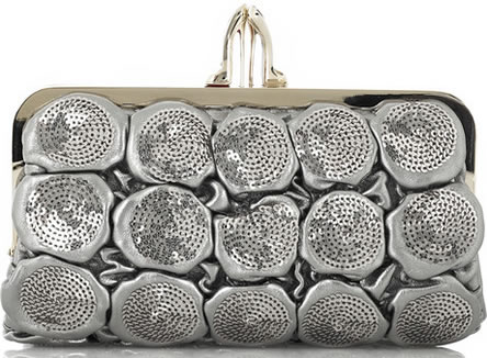 Unfortunately, the only aspect of this bag I like is the clasp. Too cute! But I’m just not falling for the silver disc look. (fb)