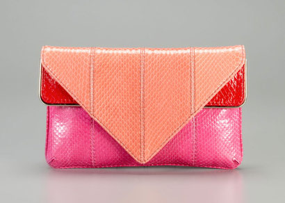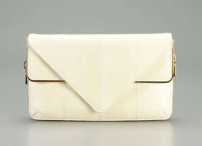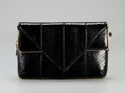 Clutches are a smart place to start for shoe designers; not only do their existing customers (buyers of many pairs of impractical, expensive shoes) likely have the lifestyle to need clutches, but smaller bags lend themselves well to embellishment and experimentation. In this small group (and no, just because the sale is on Gilt doesn’t mean there’s a discount), the geometrically embellished minaudieres are what really shine. The envelope clutches, on the other hand, are a bit basic, but based on his shoes, I’m sure Atwood will find his footing and expand on these ideas soon. Check out all of the clutches, priced from $1050 to $1850, after the jump, or shop now via Gilt.com.