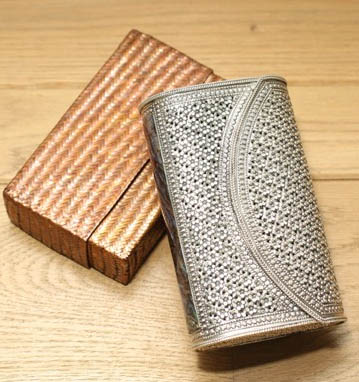 Here we have two excellent examples – first, their famous woven box clutch in what appears in be a new bronze iteration (they’ve done sterling silver in the past). The clutch is simultaneously subtle and complicated, a combination that is incredibly hard to achieve. The second clutch appears to be a completely new design, probably made out of sterling silver, which appears to have beautiful, glowing mother of pearl on the bottom. These clutches are typical of the Celestina aesthetic and I can’t wait to see what else they have in store in future collections.