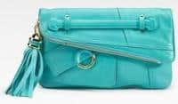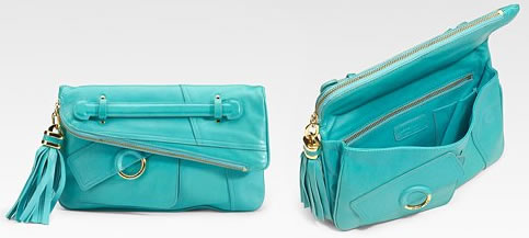 It was as if the other photo made the bag look bland and lackluster. Or maybe it was even the color of the bag. But once this bright turquoise Derek Lam Elsa Leather Clutch caught my eye, I felt overcome to share it with you.