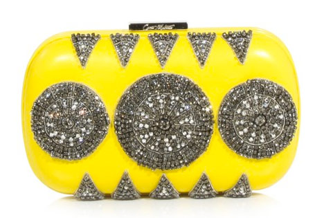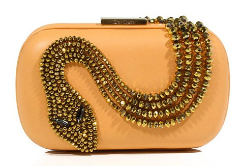 For one reason or another, some designers go absolutely bonkers when it comes time to decorate a simple little box clutch. I’m not sure if it’s because the small proportion lends itself more easily to making big ideas wearable or if the structured feel of the bags makes them easier to decorate intricately, but it seems as though Corto Moltedo Spring 2011 takes note of both of those advantages.