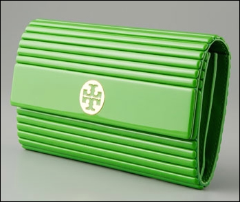 Tory Burch is known for her ballet flats (over done but I absolutely love them!). Then there is the casual and comfortable clothing, that I am obsessed with as it is perfect for Florida, and a less known staple but a growing mark from Tory, her handbags. And while many of her handbags only seem fitting for a beach bag, it is the Tory Burch Resin Clutches that have caught my attention recently. There are many major perks to these clutches. First off, you have to be the messiest and most unlucky person in the world to ruin it by spilling anything on it. The clutches will wipe off nearly anything, making them ideal for a bar or any situation where someone may spill (which is indeed often). The size is perfect for your hand hand, 4.5″H x 8″L x 1″D. Then there is the plethora of colors; every option to suit your fancy, just like her Ballet Flats. The look is simple, yet modern with the sleek gleam of resin and ribbed texture. There is a Tory Burch logo medallion on the front and snap closure. I’ll take one!
