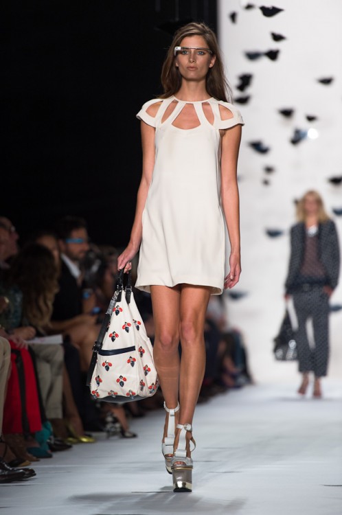 Still in its design infancy, Glass is a pair of (glass-less, ironically) glasses that captures the wearer’s experiences while he or she moves through the world. At the DVF show, wearers included front-row attendee and Google co-founder Sergey Brin, model Hanne Gaby Odiele and Diane von Furstenberg herself. All of the wearers captured the show from their perspectives, and on September 13, we’ll all be able to see the POV video that resulted on DVF’s official YouTube page. Don’t want to wait? Get a behind-the-scenes look on the official DVF Google+ page. Glass, meanwhile, is still in development, but I’m very interested to see what a fashion show looks like from on the catwalk and behind the scenes instead of in the seats.